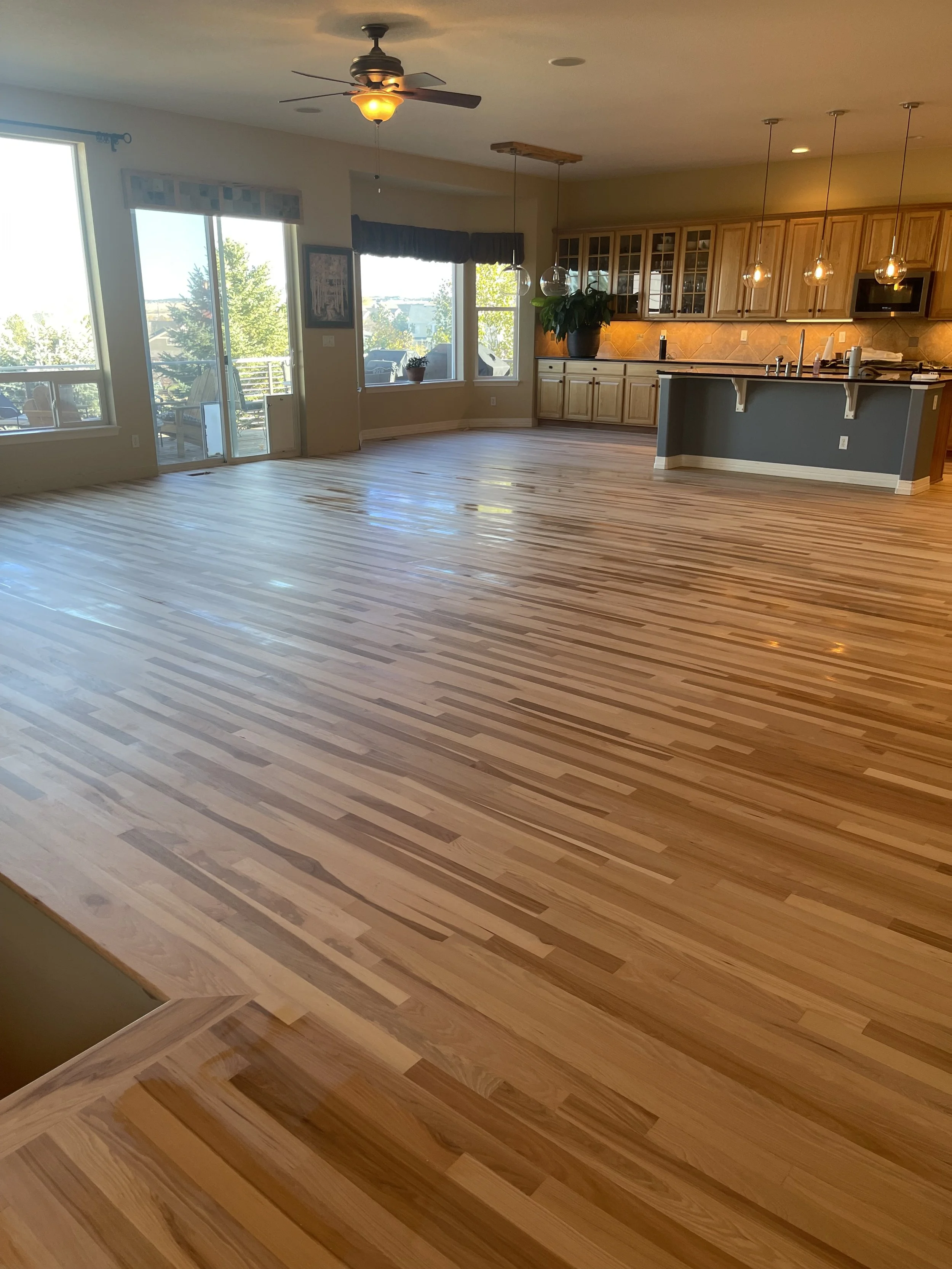 Our thorough sanding and finishing process revitalizes your hardwood floors, removing imperfections and restoring their natural beauty. With precise attention to detail, we create a smooth, flawless surface and apply a commercial grade finish that enhances the wood’s color and grain for years to come.